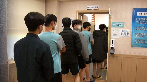 군 면제 절차를 기다리는 대기자들