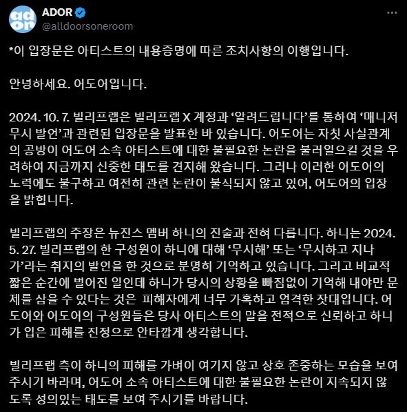 #어도어 #뉴진스 #하니 #KPOP #내용증명 #팬소통 #아티스트보호 #KPOP뉴스